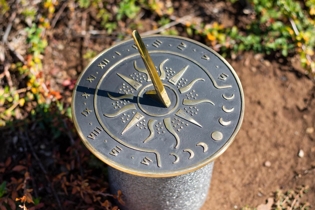 Sundials are ancient pieces used to tell time by referencing the shadow cast by the sun. Sun dials consist of a thin rod or gnomon and a flat surface usually etched with numbers. The gnomon casts a shadow on the number markings depicting time.